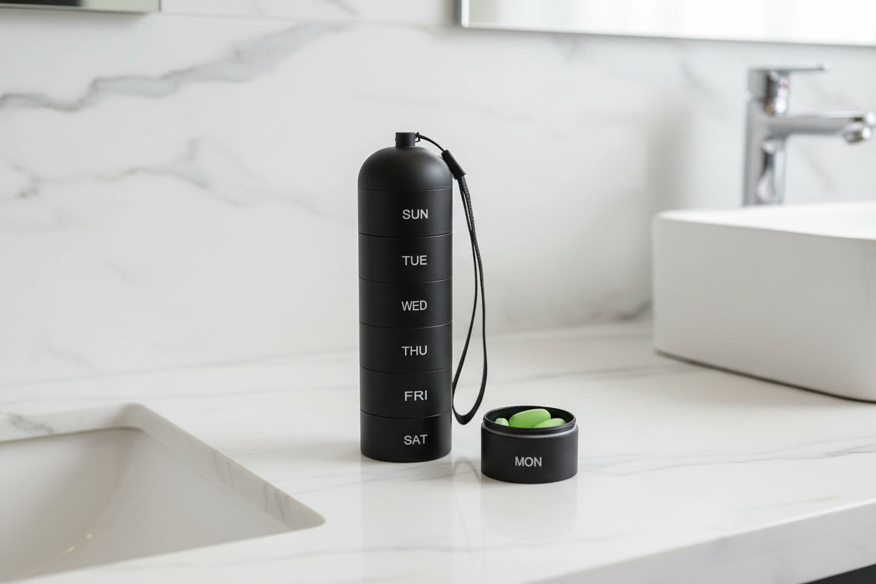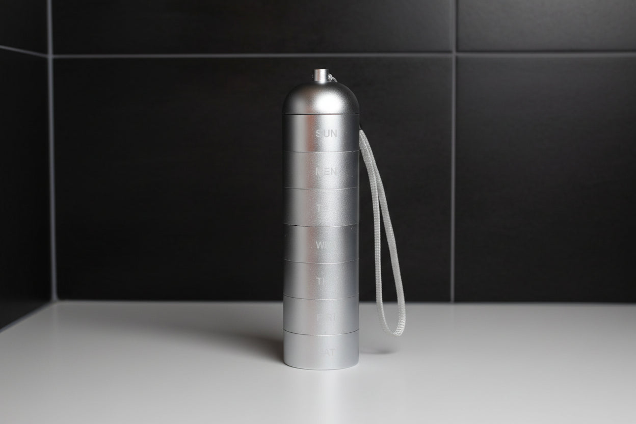 Designed for the discerning traveler, this aluminum pill organizer delivers practical sophistication. Its moisture-sealed compartments safeguard medications through any journey—whether camping, commuting, or exploring. Engineered for durability, it slips easily into your pocket, bag, or backpack, making reliable medication management effortless.