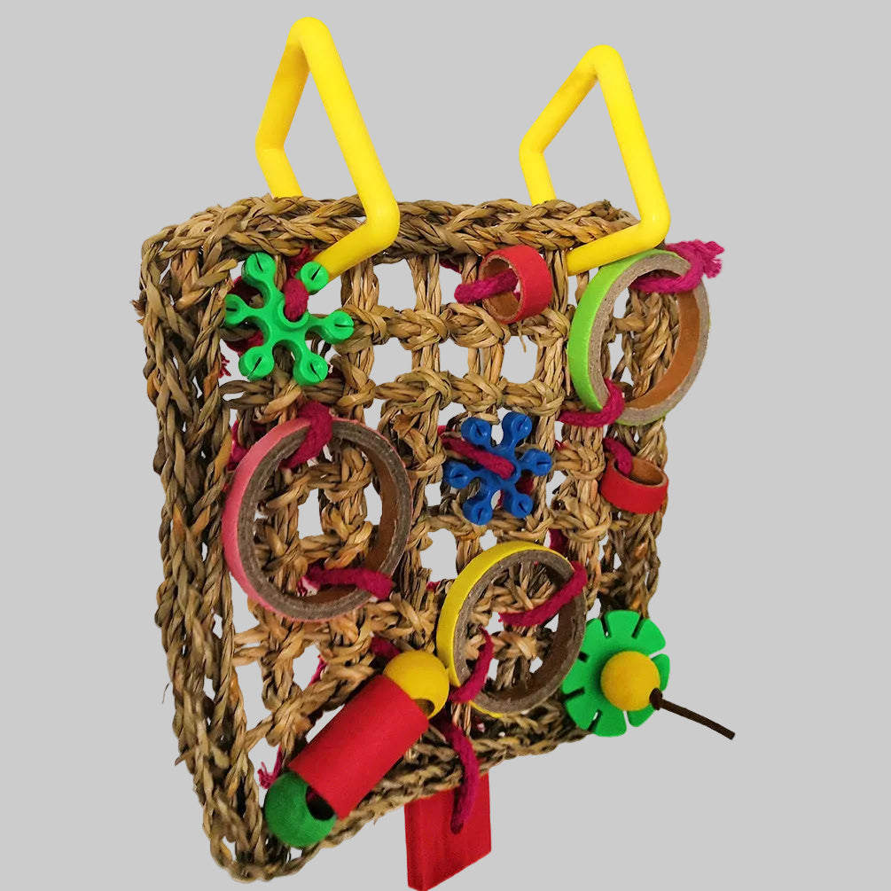 Let your feathered companion swing into fun with this charming seagrass perch, loaded with colorful building block toys that spark curiosity and adventure. Built tough at 18x24cm, it's the perfect playground for parrots and small birds who crave activity and mental stimulation. The natural seagrass construction is both safe and sustainable, offering a texture birds love to grip and explore. Multiple perching points encourage climbing and balancing, while the attached toys provide endless entertainment and enrichment. Whether your pet is a curious budgie, playful cockatiel, or small parrot, this versatile accessory keeps them engaged, active, and happy. Easy to install and built to withstand daily play, it's an investment in your bird's wellbeing and joy..