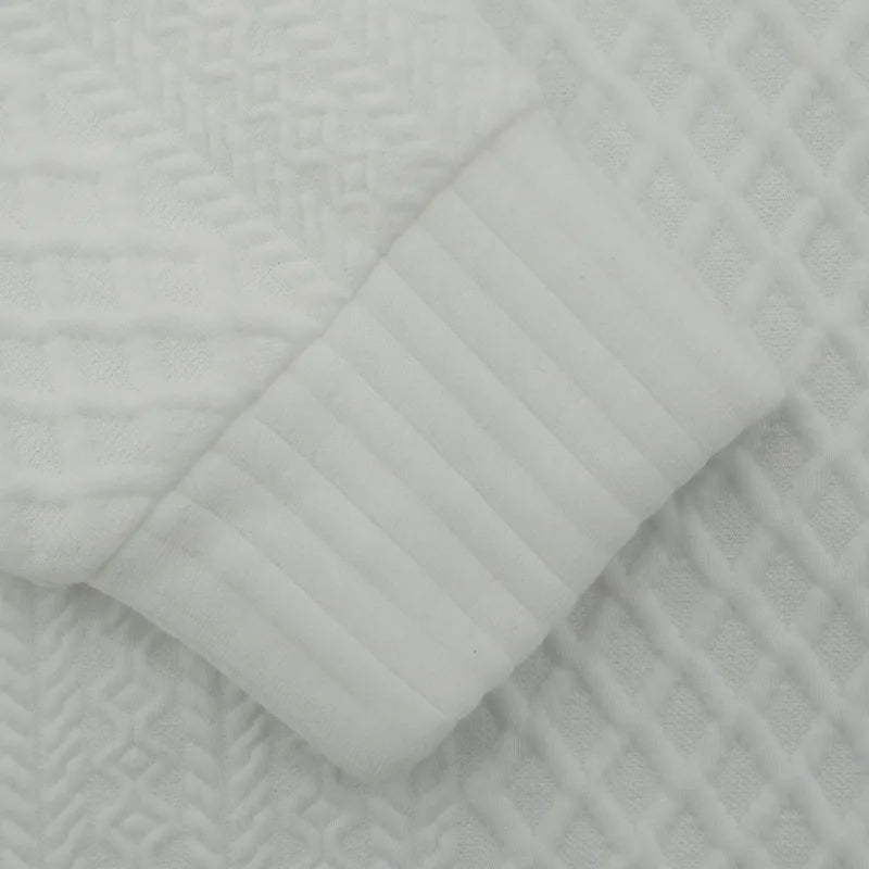 Elevate your wardrobe with this Men's Long-Sleeved Jacquard Knit Pullover Sweater, featuring a refined stand-up collar for a polished silhouette. Crafted with intricate jacquard knitting, it offers subtle texture and depth, blending comfort with distinctive style. This versatile sweater provides warmth while maintaining breathable wear, making it ideal for layering or standalone sophistication in cooler seasons.