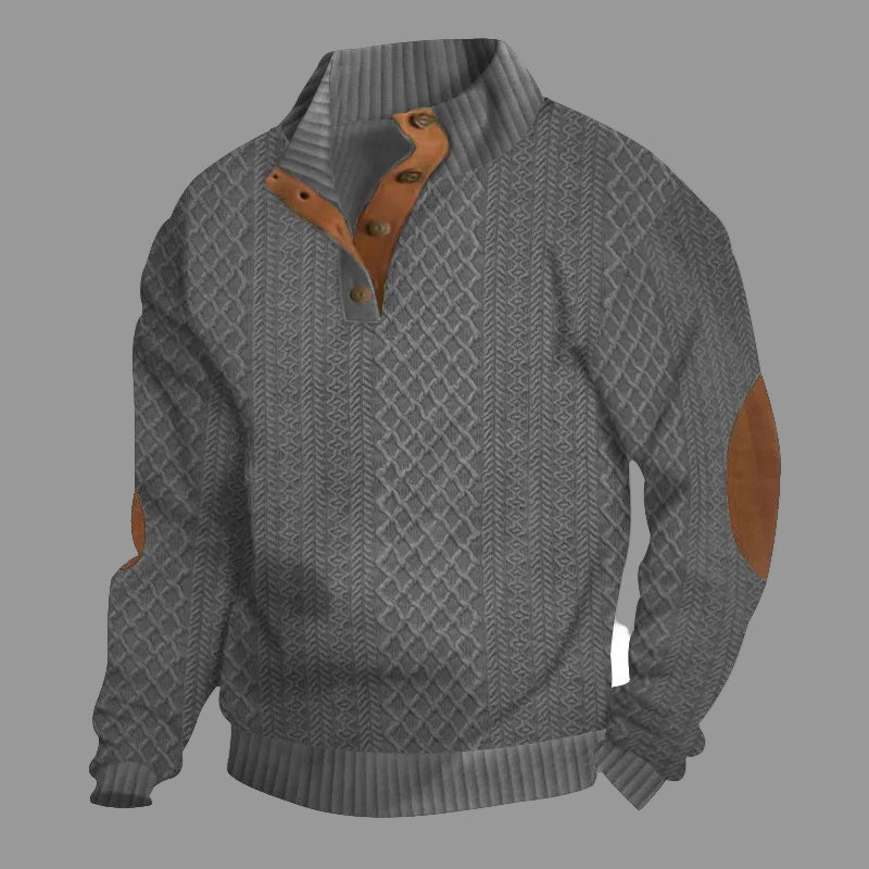 Men's Long-Sleeved Jacquard Knit Pullover Sweater with Stand-Up Collar